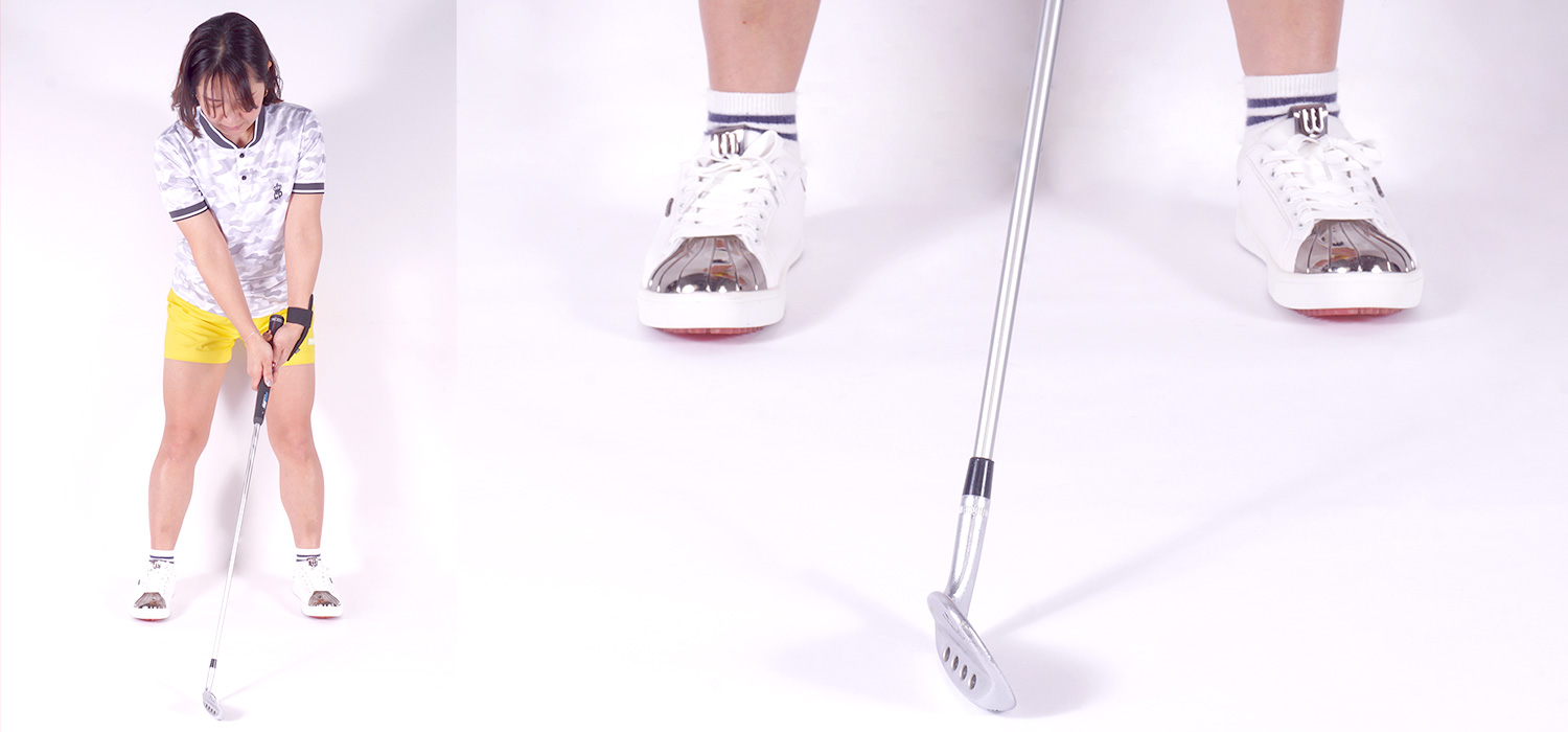 練習器具を装着したら、まずウェッジでアドレスしてみてください。